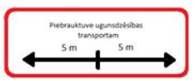 46. Ugunsdzēsības transportlīdzekļiem paredzētās piebrauktuves un caurbrauktuves platums nedrīkst būt mazāks par 3,5 m. Strupceļā ierīko vismaz 12 x 12 m lielu laukumu vai loku, kur apgriezties ugunsdzēsības transportlīdzekļiem.