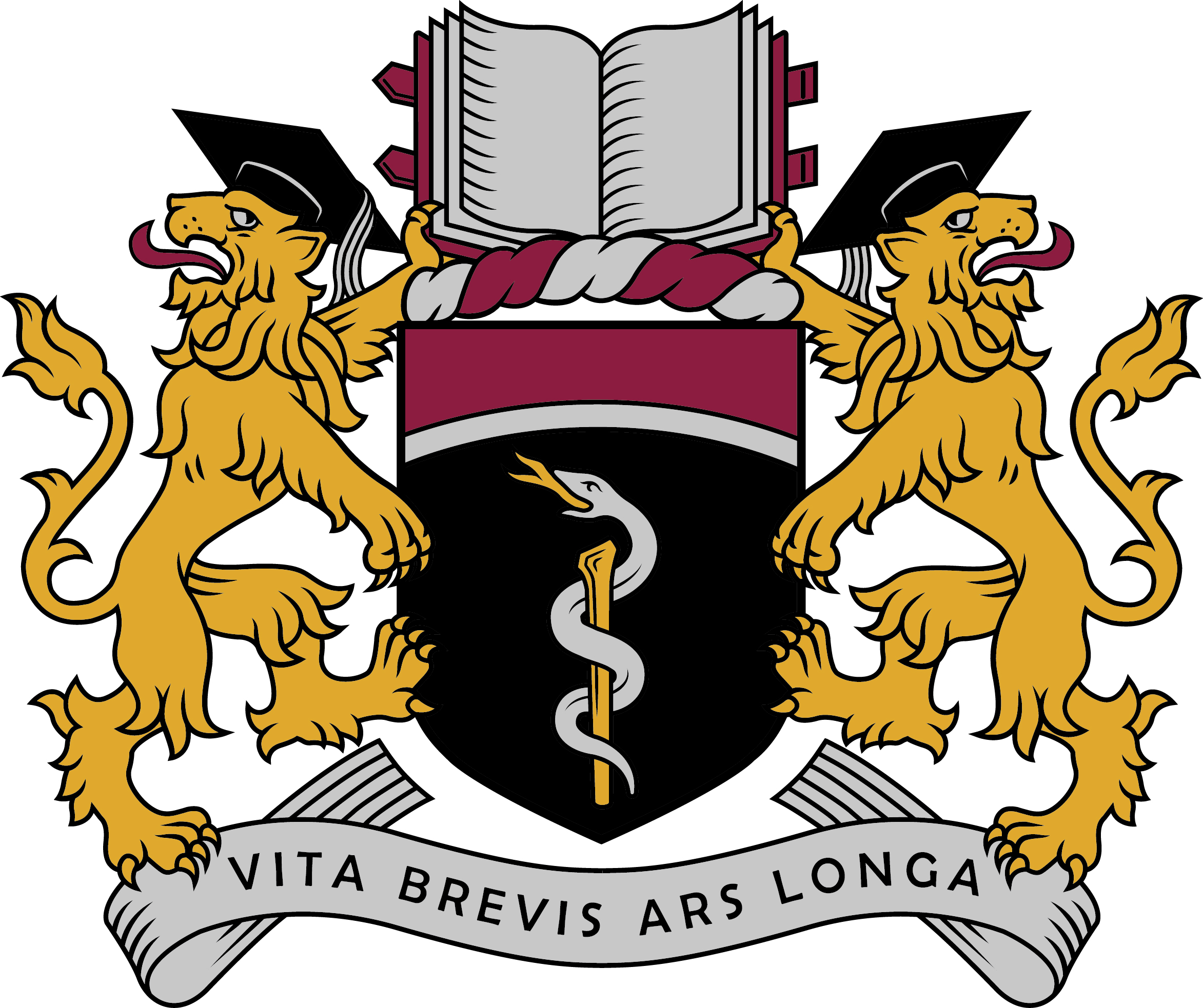 Rīgas Stradiņa universitātes ģerbonis (Dalīts galvā ar izliektu sudraba pavediensiju: purpurs un melns. Apakšējā laukā zelta Asklēpija zizlis ar tam apvijušos sudraba čūsku ar zelta mēli. Vairogs pārsegts ar sudraba-purpura grīsti. Vairoga turētāji: zelta lauvas ar atpakaļ vērstu galvu, segtu ar melnu četrstūrainu akadēmisko cepuri ar pušķi, purpura mēli, ar kreiso (1) un labo (2) ķetnu tur kleinodā atvērtu sudraba grāmatu purpura iesējumā un stāv uz sudraba lentes ar melnu devīzi: VITA BREVIS ARS LONGA) - reģistrēts 2018.gada 6.decembrī.