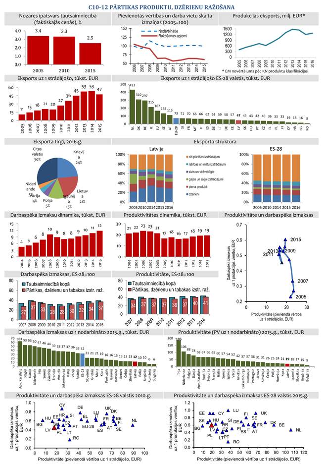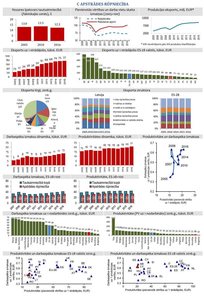 | Produktivitāte apstrādes rūpniecībā (EUR uz 1 strādājošo) | 15,6 | 15,7 | 18,5 | 19,9 | 20,3 | 20,3 | 21,4 | 22,4 |