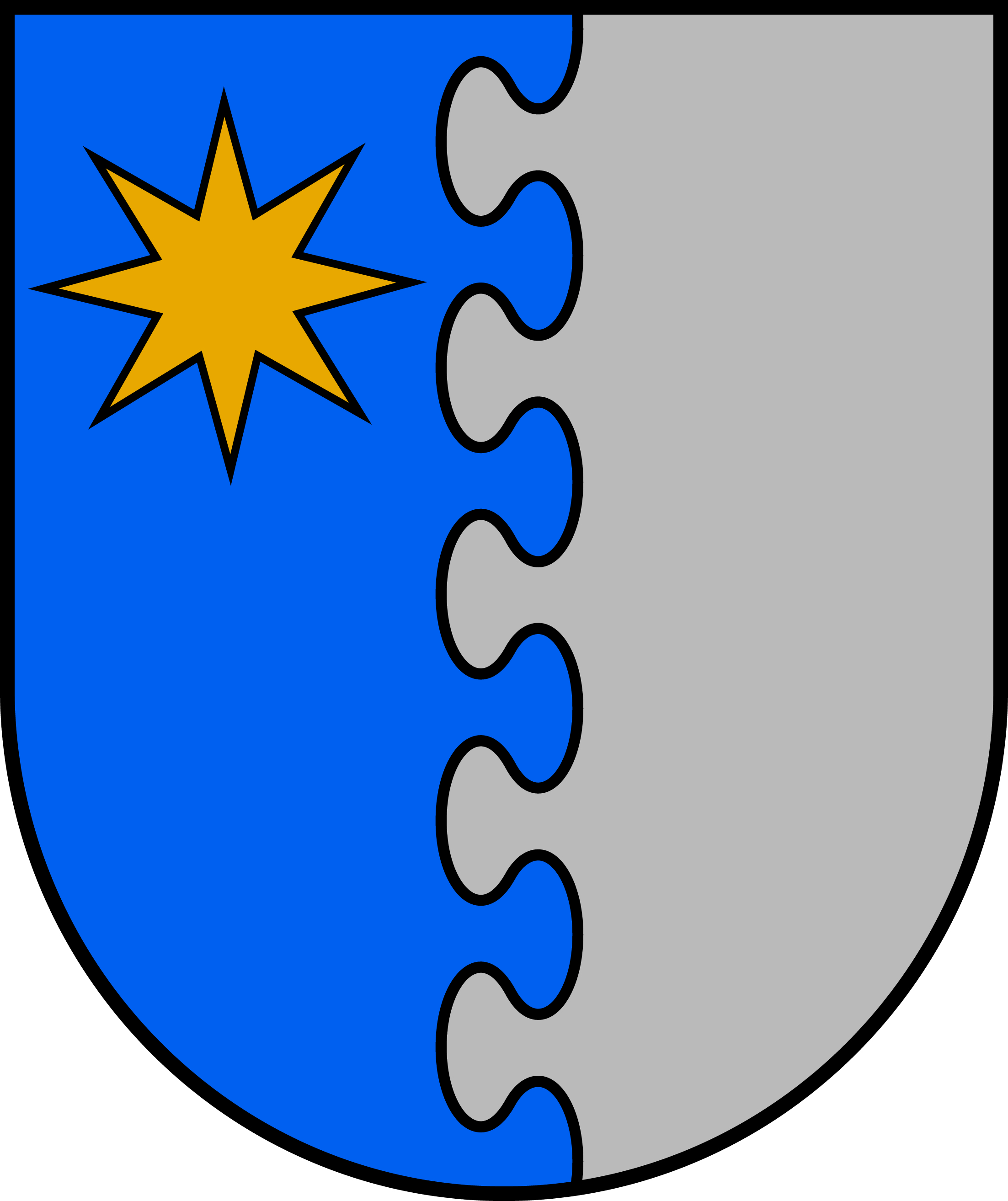 2. Ķekavas pilsētas ģerbonis (Skaldīts ar mākoņu griezumu: zils ar sudrabu. Augšējā labajā stūrī zelta astoņstaru zvaigzne.) - reģistrēts 2023. gada 8. septembrī.