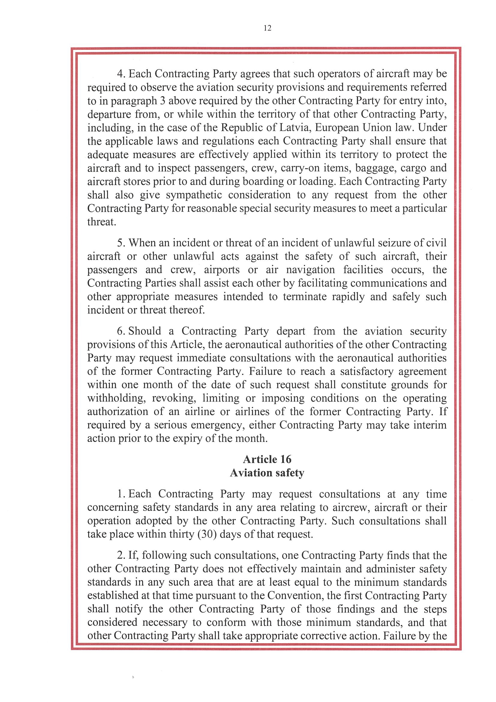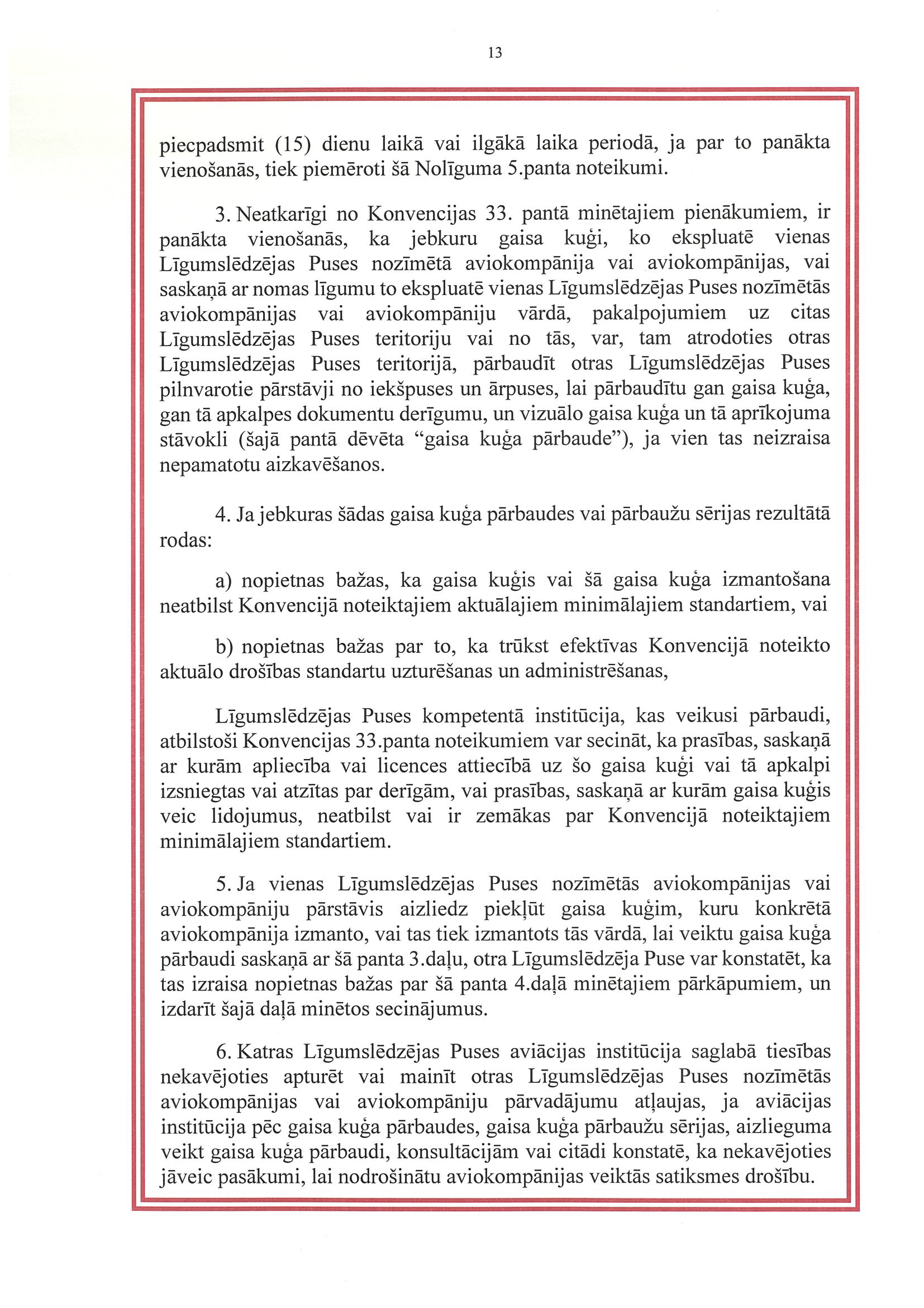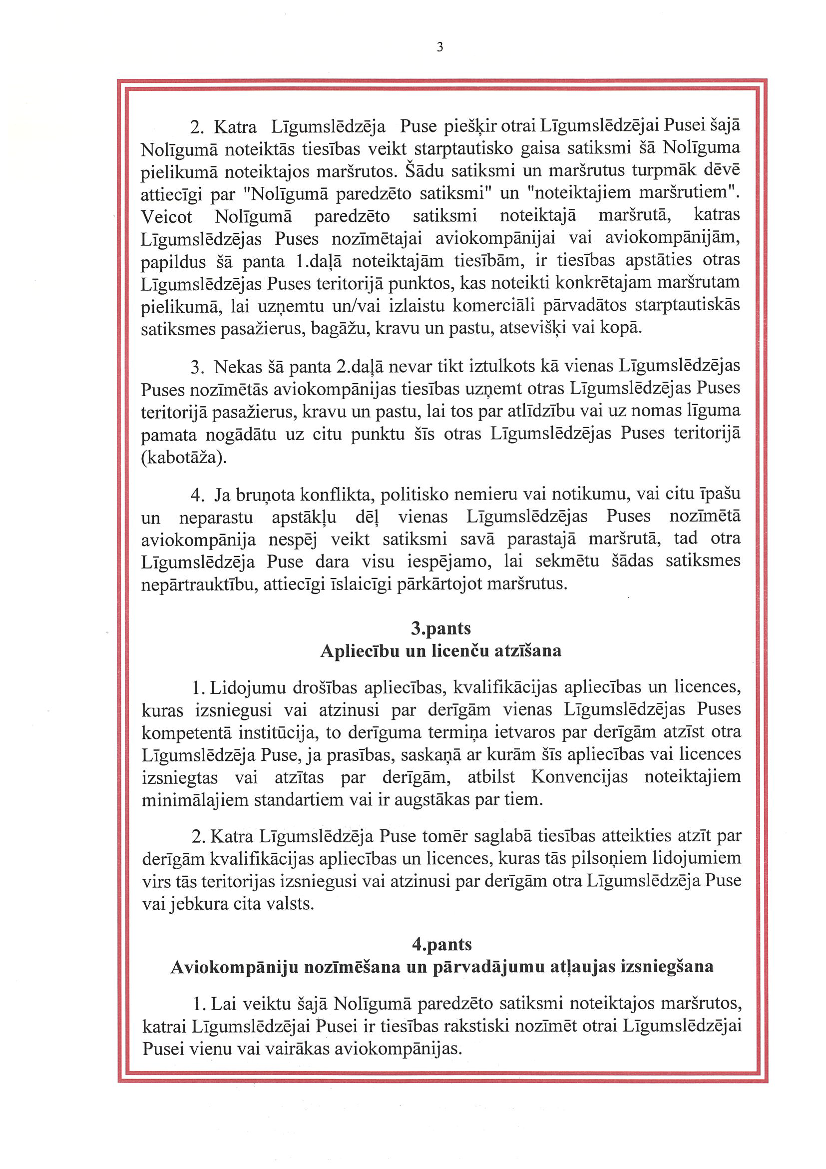 3. pants. Nolīgums stājas spēkā tā 23. pantā noteiktajā laikā un kārtībā, un Ārlietu ministrija par to paziņo oficiālajā izdevumā "Latvijas Vēstnesis". Līdz ar likumu izsludināms nolīgums latviešu un angļu valodā.