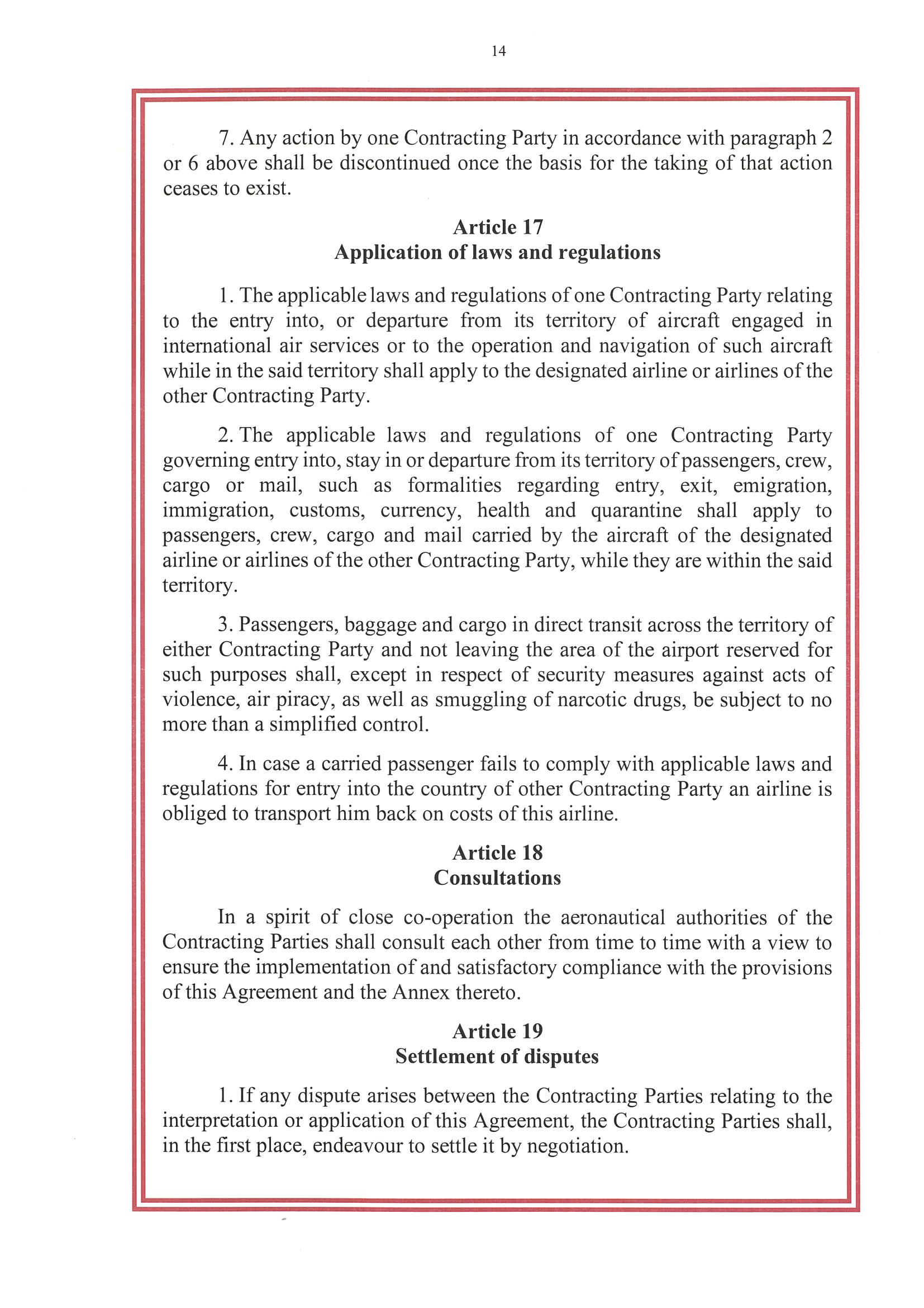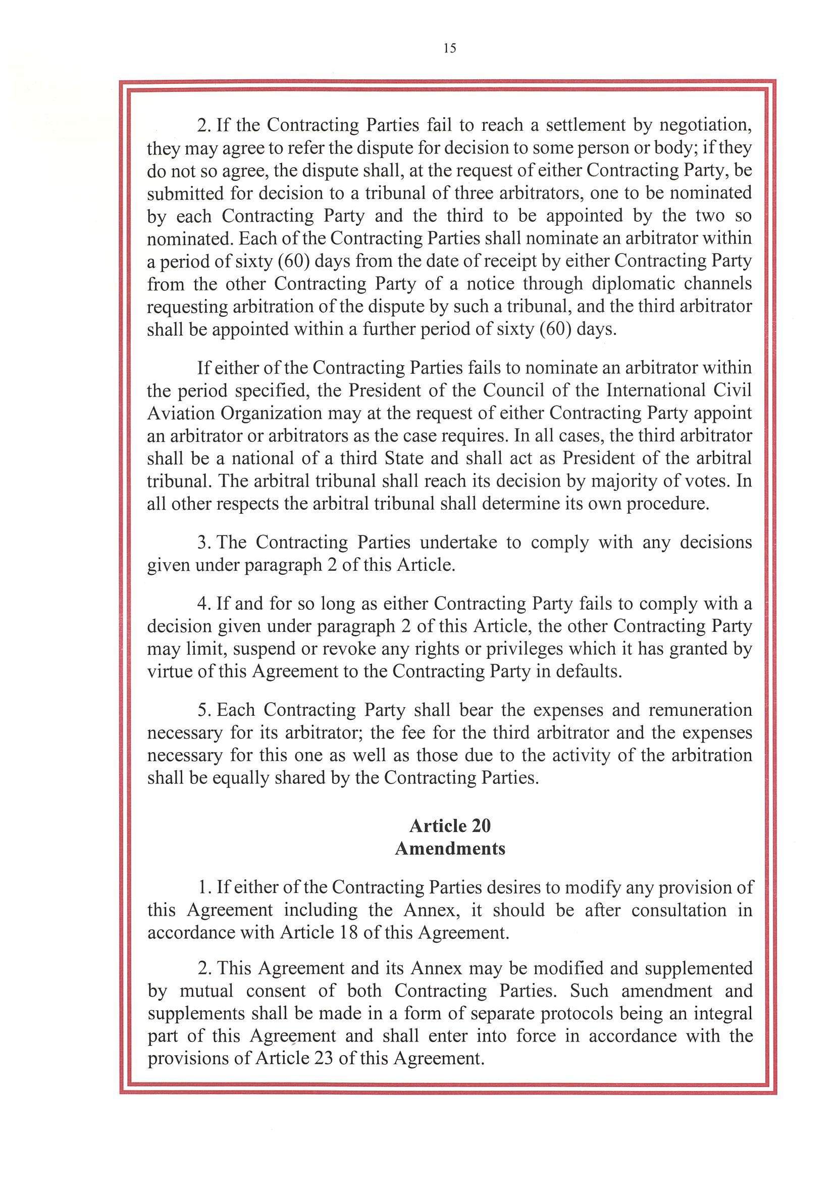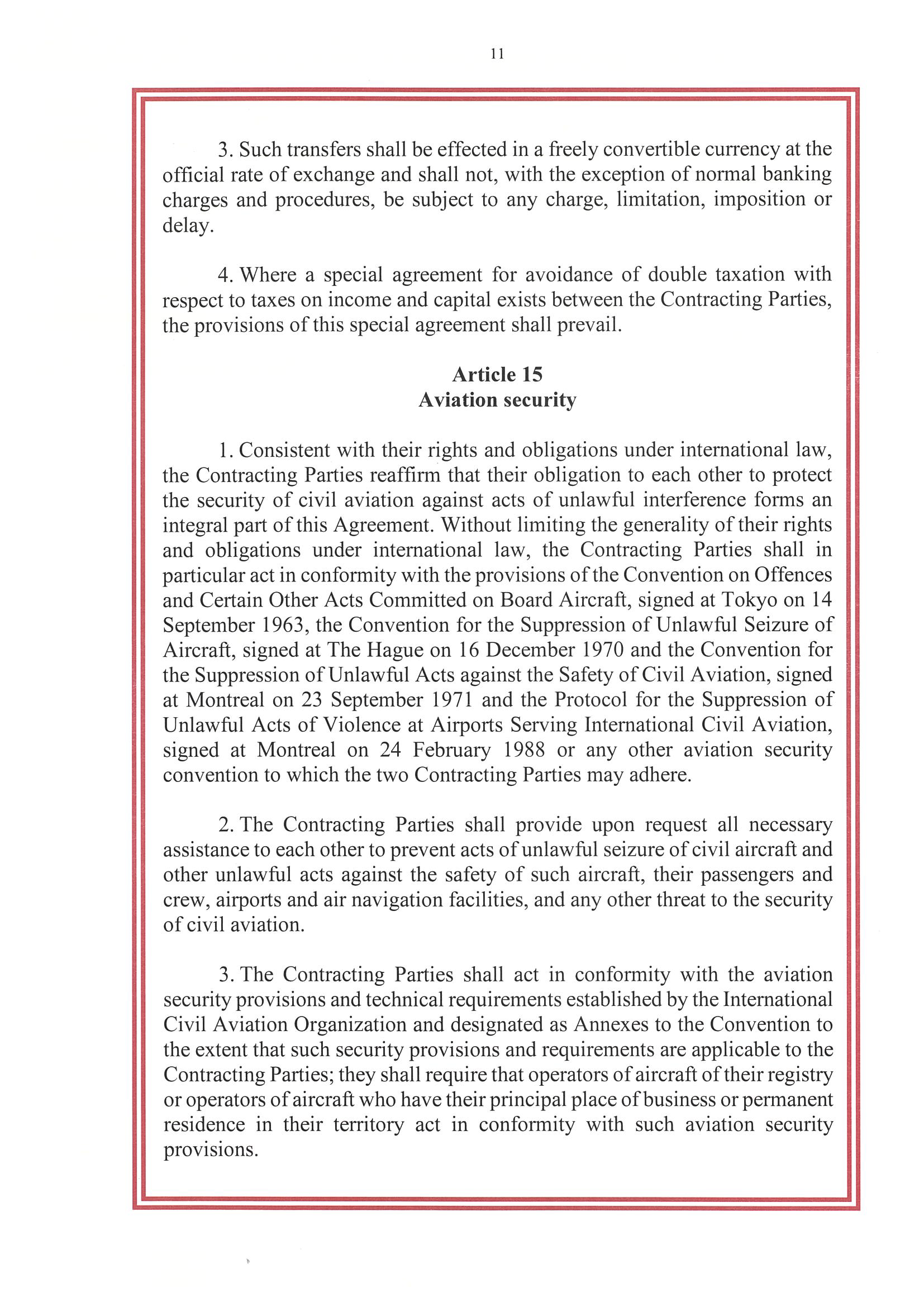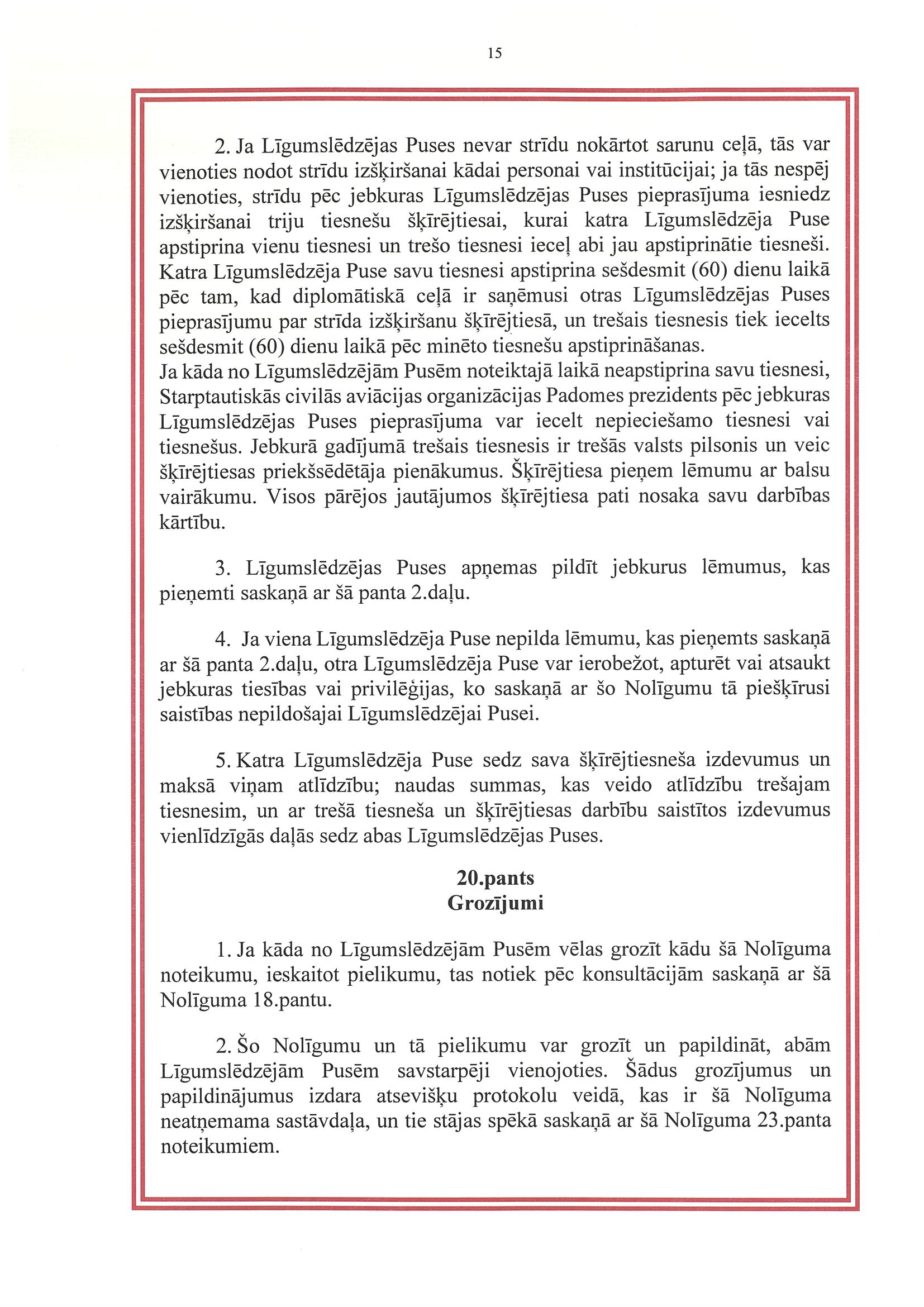 3. pants. Nolīgums stājas spēkā tā 23. pantā noteiktajā laikā un kārtībā, un Ārlietu ministrija par to paziņo oficiālajā izdevumā "Latvijas Vēstnesis". Līdz ar likumu izsludināms nolīgums latviešu un angļu valodā.