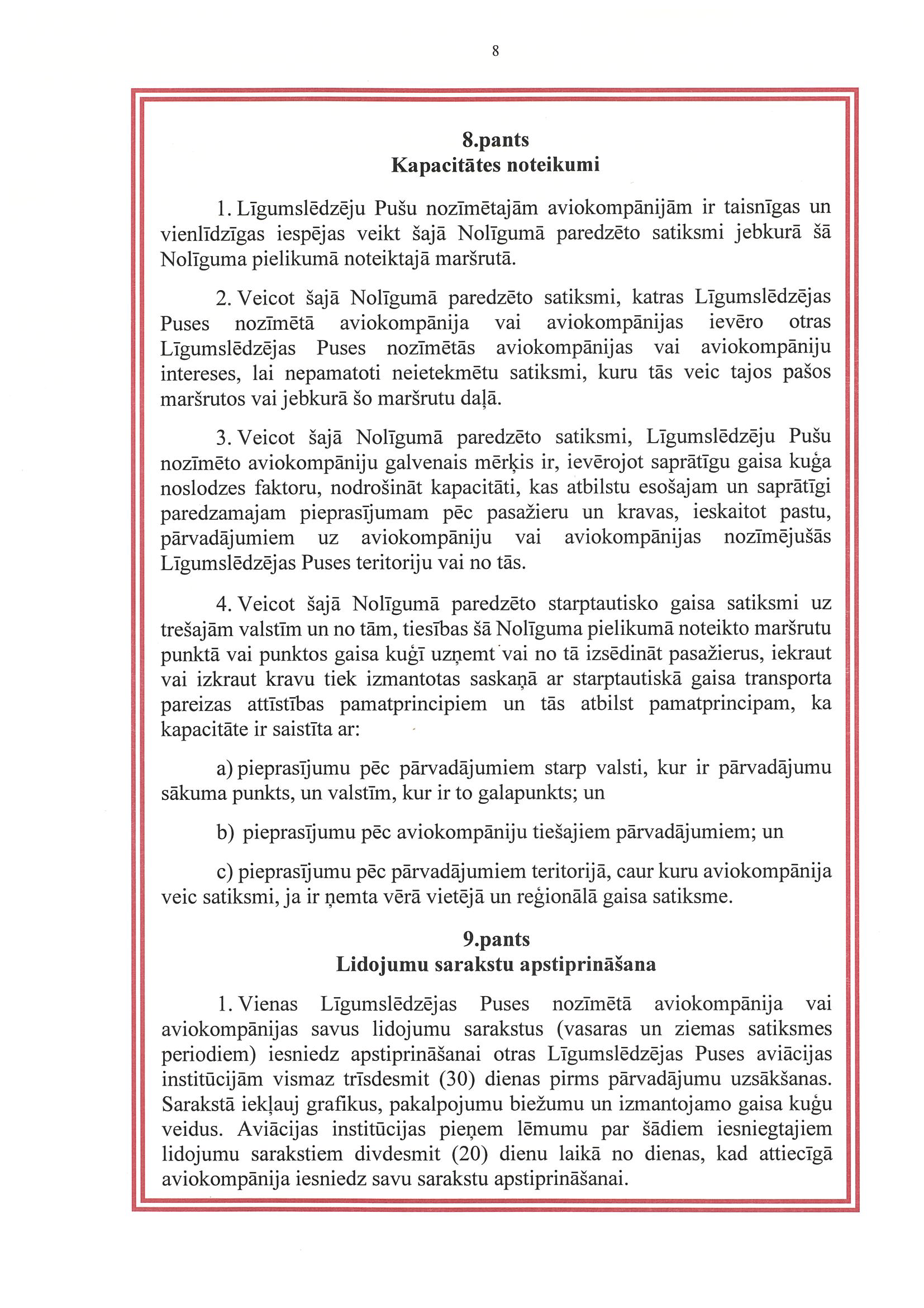 2. pants. Nolīgumā paredzēto saistību izpildi koordinē Satiksmes ministrija.