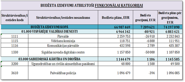 Budžeta izdevumu daļā palielinājums vai samazinājums budžeta plānā ir fiksēts šajā tabulā uzskaitītajās struktūrvienībās atbilstoši to funkcionālajām kategorijām: