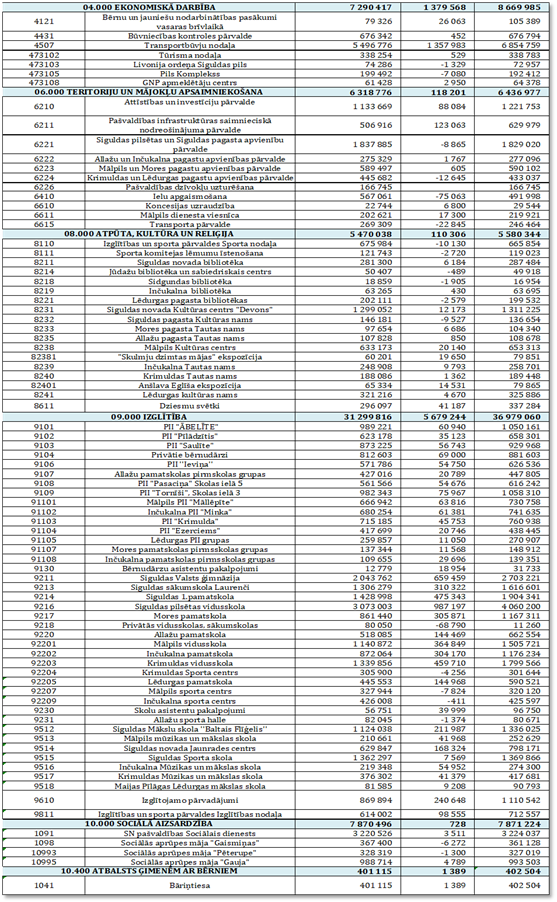 - 1 000 euro pārcelti no Transporta būvju nodaļas uz Siguldas novada Jaunrades centru komandējuma īstenošanai;
