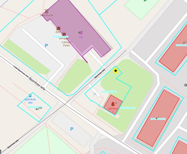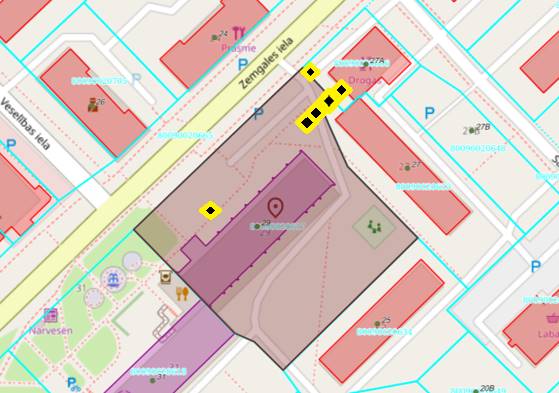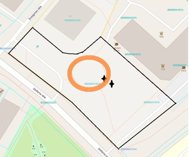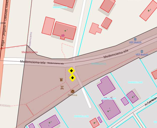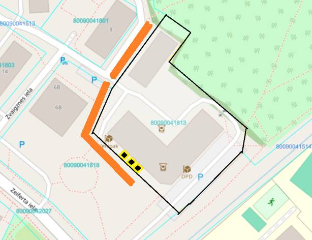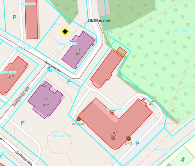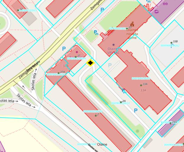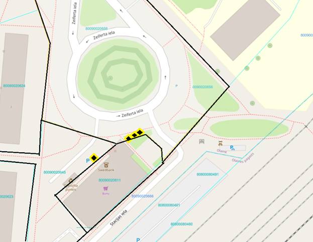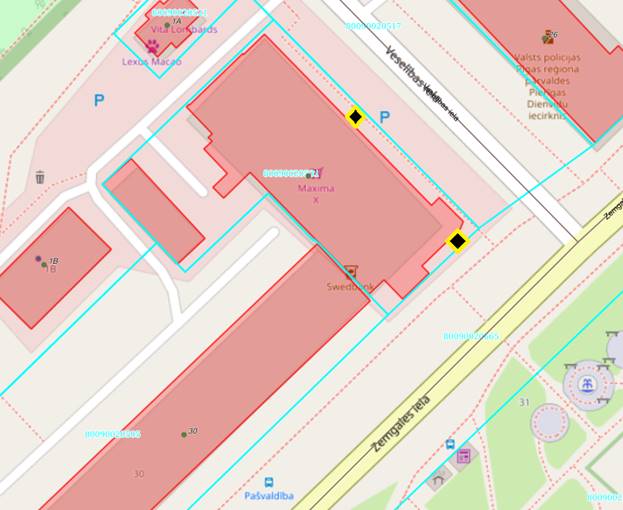 5.1.7. pie veikala "Maxima", Olainē, Olaines novadā, Zemgales ielas sarkanajās līnijās, zemes vienības kadastra apzīmējums 80090020665, un Veselības ielā 1, zemes vienības kadastra apzīmējums 80090020501 (7. pielikums);