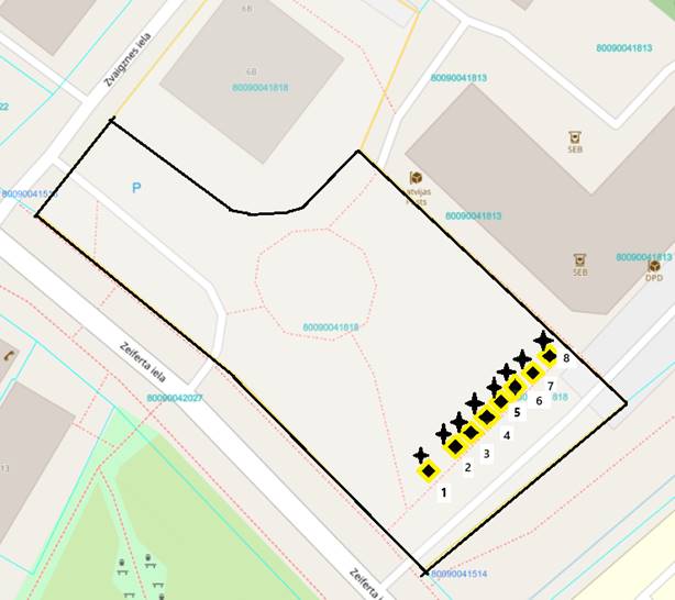 5.1.2. labiekārtotas Tirdzniecības vietas ar iespēju izmantot elektrības pieslēgumu Zeiferta ielā 6B, Olainē, zemes vienības kadastra apzīmējums 8009 004 1818 (2. pielikums):