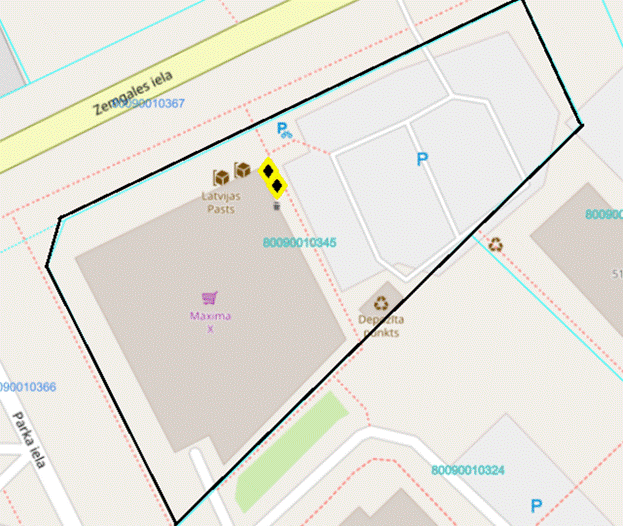 5.1.10. pie veikala "Maxima" Zemgales ielā 53, Olainē, zemes vienības kadastra apzīmējums 8009 001 0345 (10. pielikums);