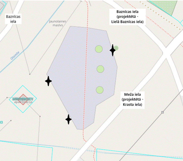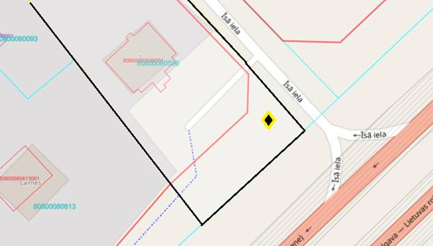 5.2.3. laukumā Īsajā ielā 1, Jaunolainē, zemes vienības kadastra apzīmējums 8080 008 0596 (13. pielikums);