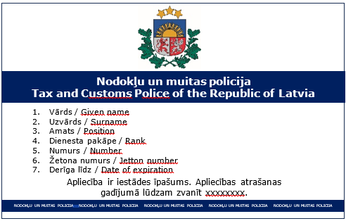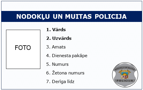 4.1. augšējās daļas vidū – iestādes nosaukums drukātiem burtiem latviešu valodā "NODOKĻU UN MUITAS POLICIJA";