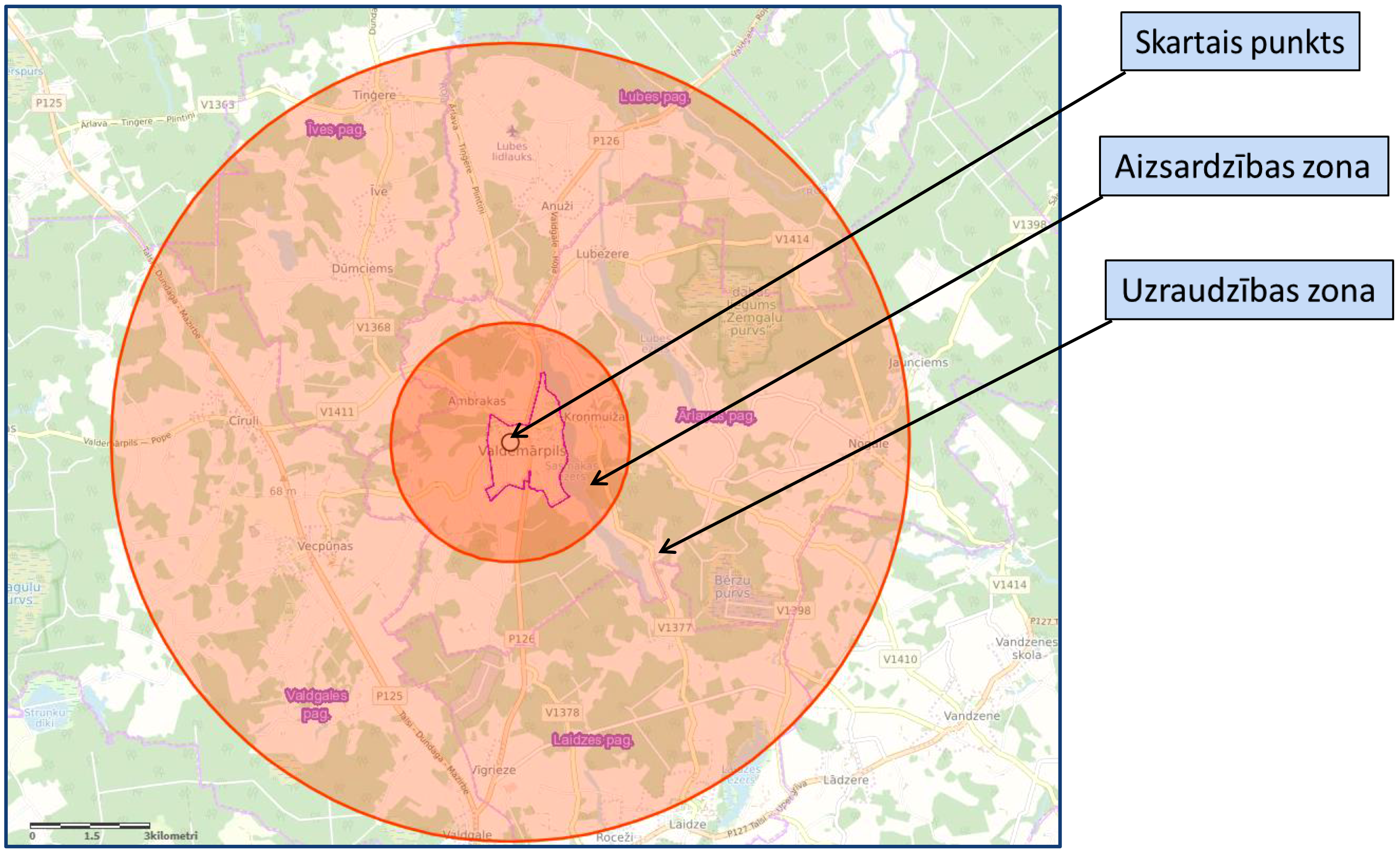 1. Karantīnu ar aizsardzības zonu Talsu novada Valdemārpils pilsētas teritorijā, Īves un Ārlavas pagastā, 3 kilometru rādiusā ap Ņūkāslas slimības skarto mājputnu turēšanas vietu (skatīt šī rīkojuma pielikumu).