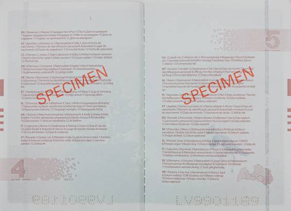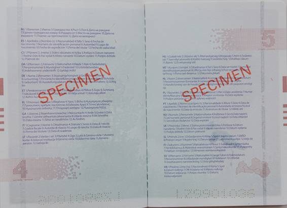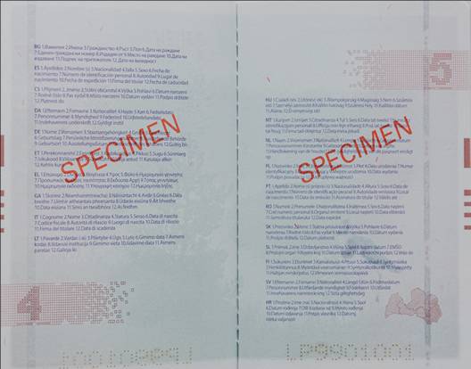 1. Nazwisko 2. Imię 3. Obywatelstwo 4. Wzrost 5. Płeć 6. Data urodzenia 7. Numer identyfikacyjny 8. Organ wydający 9. Miejsce urodzenia 10. Data wydania 11. Podpis posiadacza 12. Data upływu waźności