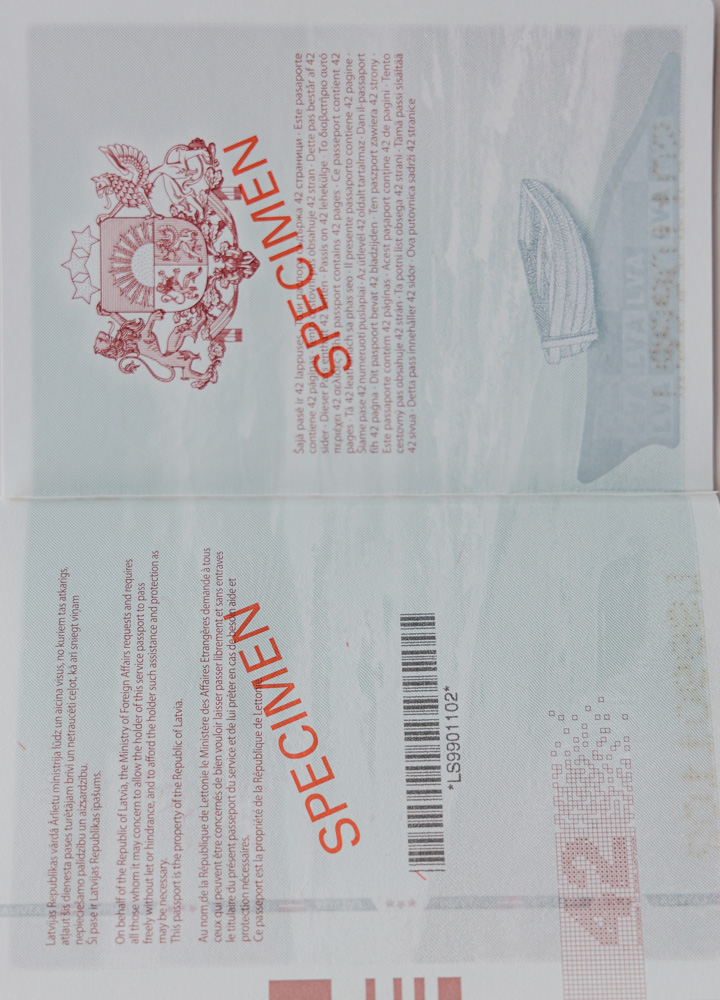 Au nom de la République de Lettonie le Ministère des Affaires Etrangères demande à tous ceux qui peuvent être concernés de bien vouloir laisser passer librement et sans entraves le titulaire du présent passeport du service et de lui prêter en cas de besoin aide et protection nécessaires.