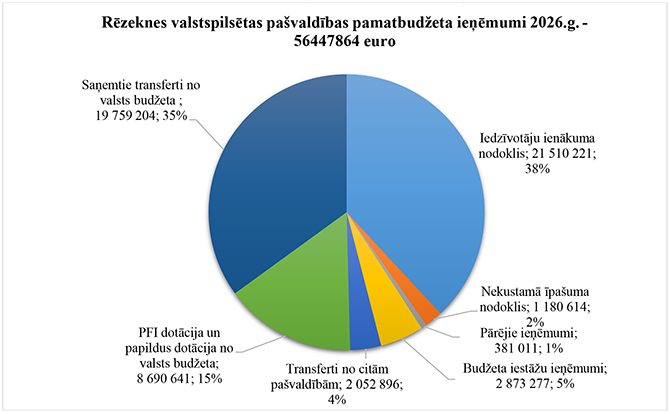 2. Apstiprināt, pilsētas budžetu 2026. gadam, ieņēmumus 56 454 864 eiro apmērā, saskaņā ar 1., 2., 3., 4. pielikumu.