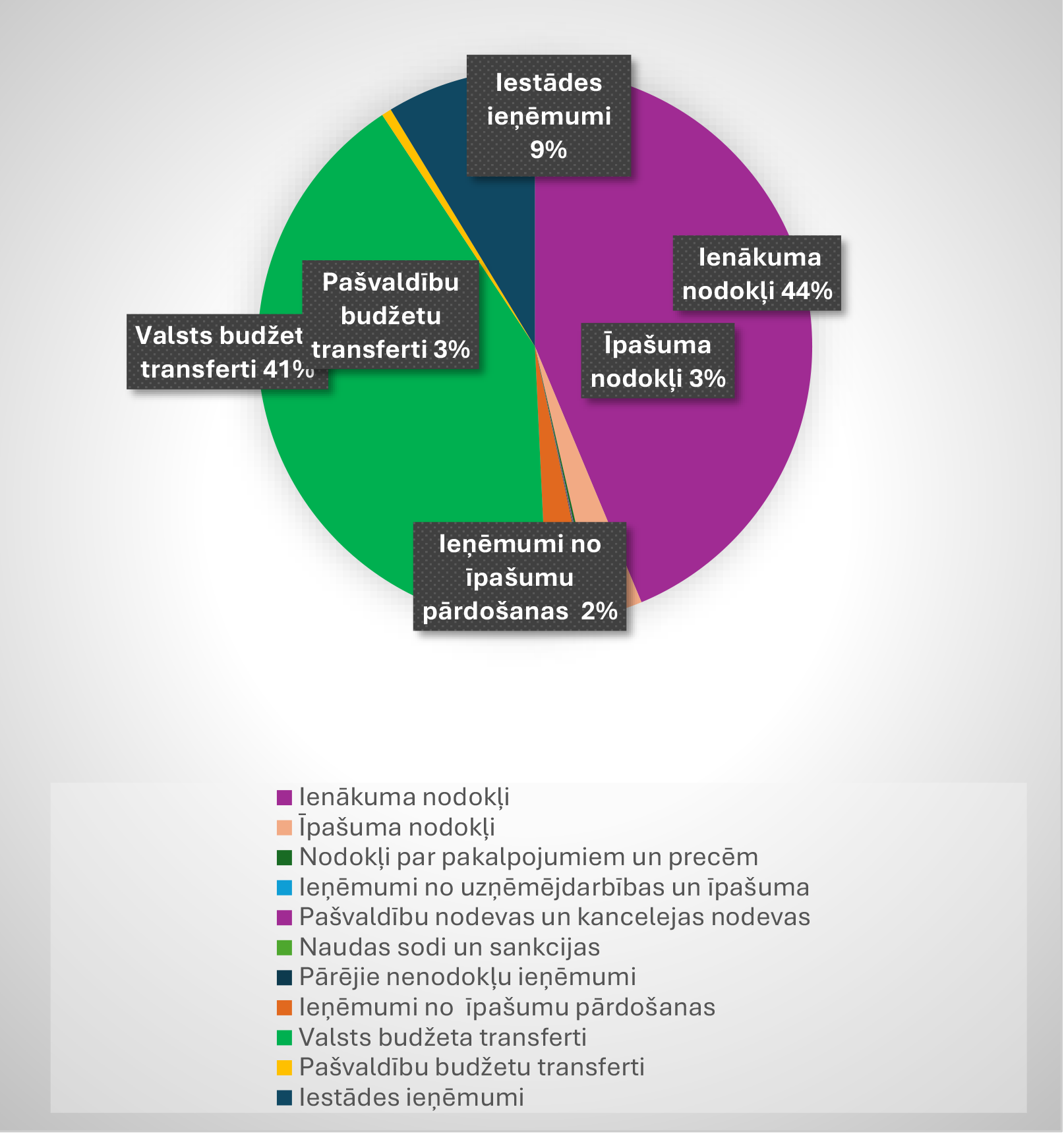 Izdevumi plānoti 30 199 386 euro apmērā, kurus plānots segt no valsts dotācijas - 13 219 426 euro, maksas pakalpojumiem - 480 640 euro, citu pašvaldību finansējuma - 370 000 euro un pašvaldības finanšu līdzekļiem euro: