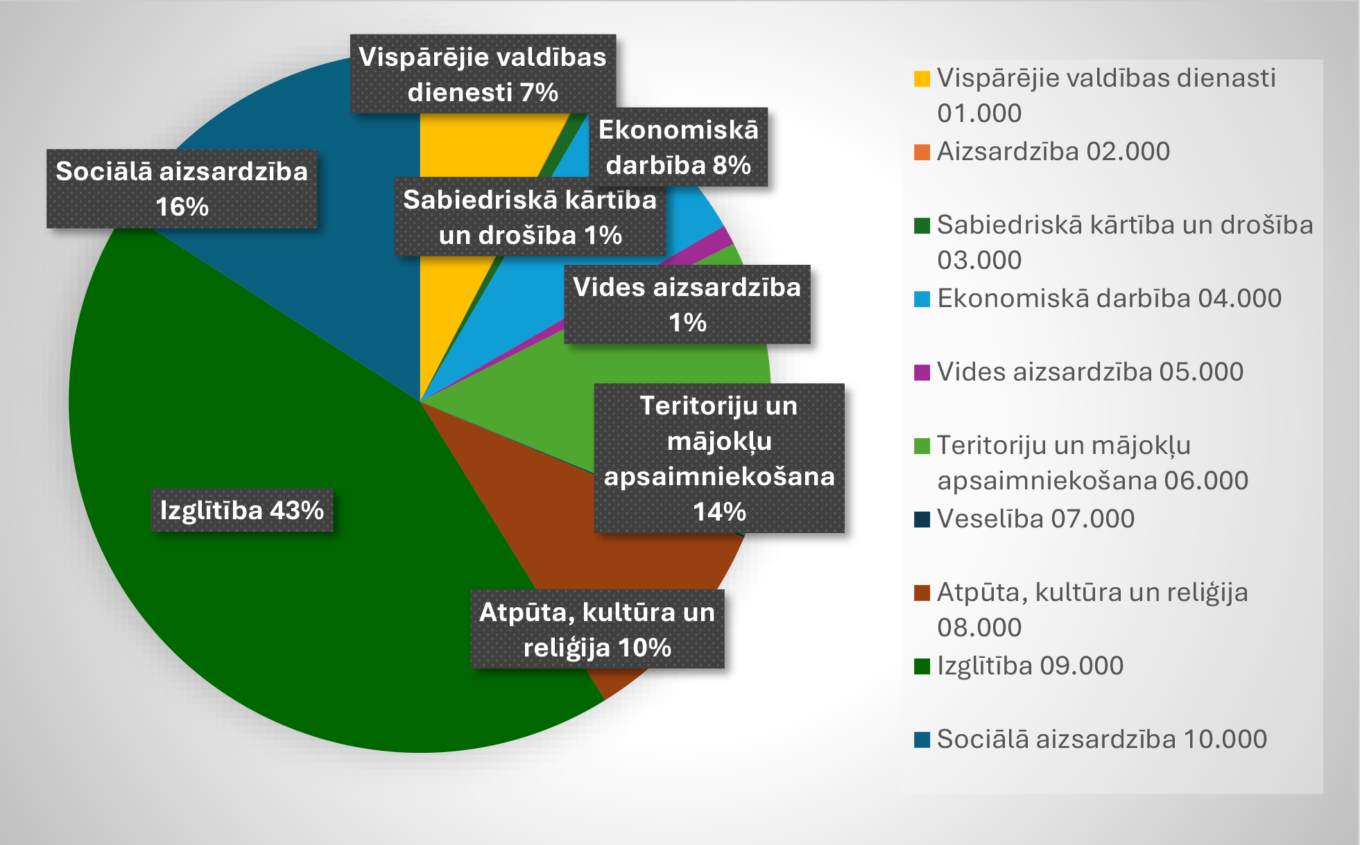 Sociālās aizsardzības funkcijai pašvaldībā plānoti 11 134 723 euro, kas ir 16 % no kopējā budžeta un par 1 283 845 euro vairāk nekā 2025. gada izpilde.