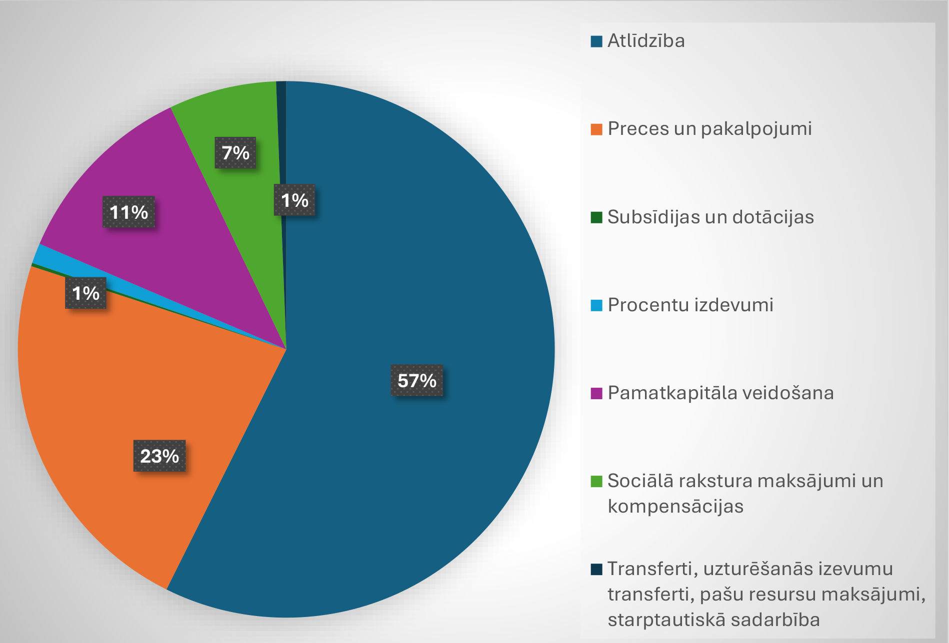 Lielākie pašvaldības izdevumi 2026. gadā plānoti atlīdzībai - 57 % no kopējiem izdevumiem, kas ir vairāk nekā 40 milj. euro. No tā vairāk nekā puse tiek maksāta izglītības jomā - 23.8 milj. euro. Atlīdzības izdevumos plānota darbinieku veselības apdrošināšana, kā arī atvaļinājuma pabalsti.