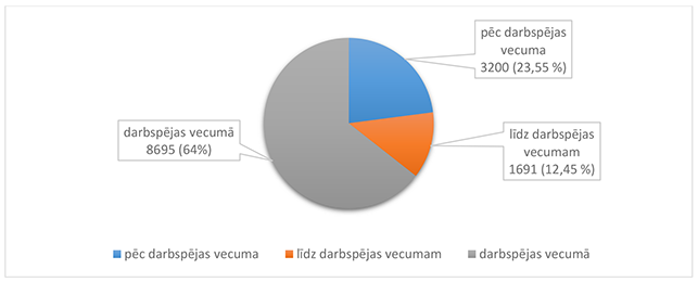 iedzīvotāju sadalījums pēc vecuma grupām, uz