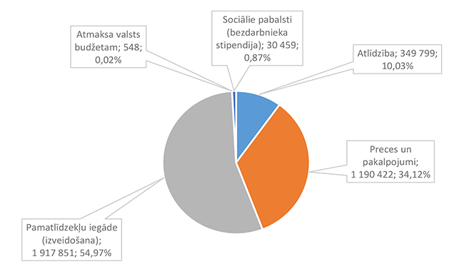 Saskaņā ar ziedojumu un dāvinājumu noteiktiem mērķiem to izlietojums pa ekonomiskās klasifikācijas kodiem atspoguļots 49. attēlā.