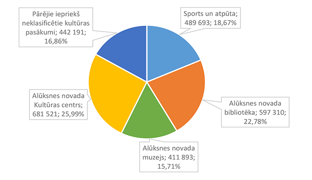 Lielākais īpatsvars ir pašvaldības asignējumi 152 739 EUR, kas ir 32,45 % no pārējo citur neklasificēto izglītības pakalpojumiem 2026. gadam plānotā finansējuma, otrā pozīcijā ir ieņēmumi izglītības funkciju nodrošināšanai (Latvijas pašvaldību maksājumi par viņu teritorijā deklarētiem skolēniem, kuri apmeklē Alūksnes novada izglītības iestādes) 135 261 EUR, kas ir 28,74 % no pārējiem citur neklasificētiem izglītības pakalpojumiem 2026. gadam plānotā finansējuma.