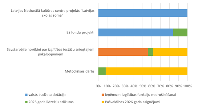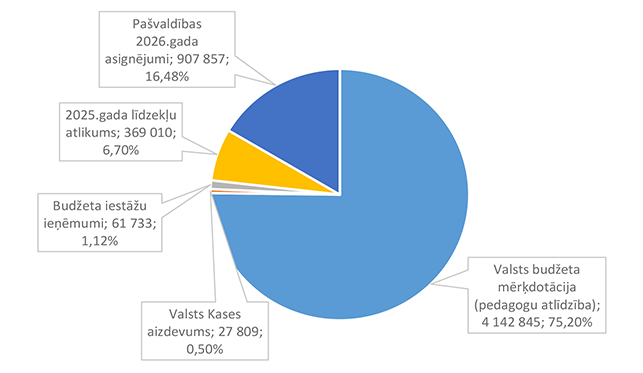 Lielākais īpatsvars ir pašvaldības 2026. gada asignējumiem 88 825 EUR, kas ir 77,60 % no Izglītības pārvaldei 2026. gada plānotā finansējuma.