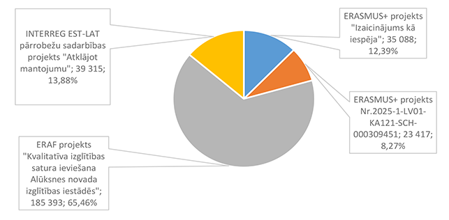 12. Eiropas Savienības Kohēzijas politikas programmas 2021.-2027. gadam 4.2.1. specifiskā atbalsta mērķa "Uzlabot vienlīdzīgu piekļuvi iekļaujošiem un kvalitatīviem pakalpojumiem izglītības, mācību un mūžizglītības jomā, attīstot pieejamu infrastruktūru, tostarp veicinot noturību izglītošanā un mācībās attālinātā un tiešsaistes režīmā" 4.2.1.5. pasākuma "Izglītības iestāžu nodrošinājums pilnveidotā vispārējās izglītības satura kvalitatīvai ieviešanai pamata un vidējās izglītības pakāpē" projekts "Kvalitatīva izglītības satura ieviešana Alūksnes novada izglītības iestādēs".