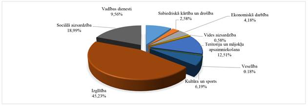 No sociālās jomas izdevumiem 2 863 755 euro jeb 22,42 % ir izdevumi sociālajiem pabalstiem un ilgstošas sociālas aprūpes nodrošināšana.