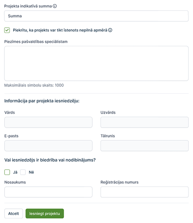 "11.1. aizpildīta projekta pieteikuma veidlapa Līdzdalības budžeta informācijas sistēmā (pielikums).".