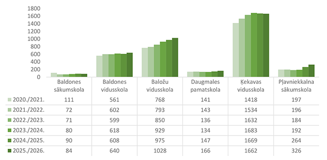 Tomēr, neskatoties uz kopējās valsts demogrāfijas datiem, Ķekavas novadā izglītības iestādēs skolēnu skaits ik gadu līdz šim ir turpinājis augt. Kopējais izglītojamo skaits sešās novada vispārējās izglītības iestādēs 2025. gadā ir 3906, kas, salīdzinot ar 2024. gadu, pieaudzis par 153 skolēniem.