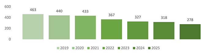 Tabula nr. 3. Ķekavas novadā deklarēto bērnu skaits, 2019.-2025.