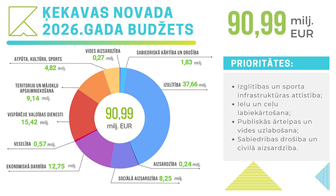 Ķekavas novada pašvaldības 2026. gada budžets veidots, izvērtējot novada sociāli ekonomisko situāciju, iedzīvotāju vajadzības un turpinot iepriekšējos gados uzsāktos attīstības virzienus. Budžetā nozīmīgu daļu veido investīcijas, kas tiek īstenotas, izmantojot Eiropas Savienības fondu finansējumu, aizņēmumus un pašvaldības budžeta līdzekļus.