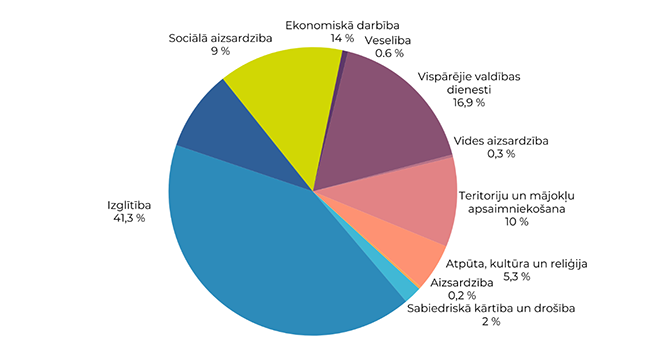 Būtiskākie izdevumi izglītības jomā saistīti ar pirmsskolas izglītības iestāžu, vispārējās izglītības iestāžu un profesionālās ievirzes izglītības iestāžu darbības nodrošināšanu. Finansējums paredzēts pedagogu un atbalsta personāla atlīdzībai, mācību procesa nodrošināšanai, izglītības iestāžu uzturēšanai, komunālo pakalpojumu apmaksai un citiem ar ikdienas darbību saistītiem izdevumiem. Tiek paredzēts pirmsskolas izglītības pedagogu palīgu atlīdzības palielinājums par 5,4 %, lai mazinātu atalgojuma atšķirības starp pašvaldībām un nodrošinātu atalgojuma līmeņa pakāpenisku pietuvināšanu darba tirgus tendencēm.