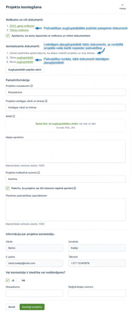 | 4. Ietekme uz administratīvajām procedūrām un to izmaksām | Saistošie noteikumi iekļauj līdzdalības budžeta projekta izmaksu aprēķina (tāmi) formu konkursam, kuru interesenti aizpilda un pievieno projekta pieteikuma formai valsts vienotajā ģeotelpiskās informācijas portālā http://geolatvija.lv, lai pretendētu uz projekta realizāciju. Forma nav atsevišķi jāparaksta, par parakstu kalpo autentifikācija portālā. |
